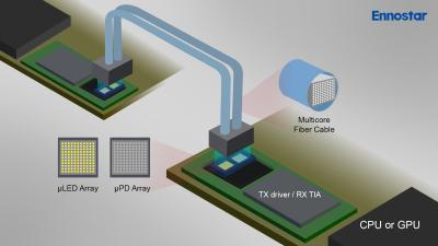 近日,富采展示了一款基于Micro LED的光学I/O解决方案,该方案由富采与友达光电(AUO)和鼎元光电(Tyntek)联合开发,在Touch TaNvan2026共同展出。