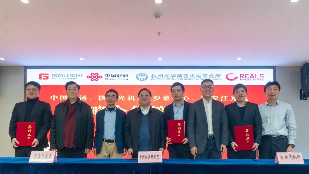 2026年1月31日,中国联通研究院、杭州光机所罗素中心、浙江富春江光电科技有限公司三方战略合作协议签约仪式在浙江富阳圆满举行。三方将聚焦空芯光纤这一前沿领域,开展深度战略合作,共同致力于核心技术研发、产品化攻关与产业生态建设,携手推动我国光通信技术革新与产业升级。浙江省杭州市富阳区政府以及浙江省联通公司相关领导也现场见证了此次签约仪式。