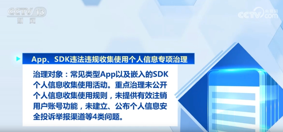 其中,在APP、SDK违法违规收集使用个人信息方面,将重点整治未经用户同意收集使用个人信息,强制用户同意收集非必要个人信息以及超出必要范围收集使用个人信息,在无关场景收集位置、通讯录、短信等个人信息,超出最低必要频率调用个人信息权限。在互联网广告领域,将重点整治利用自动化决策等方式推送广告,未设置易于理解、便于访问和操作的个性化推荐关闭选项,个人关闭个性化推荐后未停止收集个人信息,未提供删除用户个人特征标签等功能。在教育领域,将重点整治教育机构运营的网站、APP等过度收集位置、学校、学籍,家长身份证号、联系方式、职业等个人信息,重点治理教育机构线下场所及其运营的网站、APP等使用非人脸识别技术方式可以实现验证家长、学生身份,将人脸识别技术作为唯一验证方式。