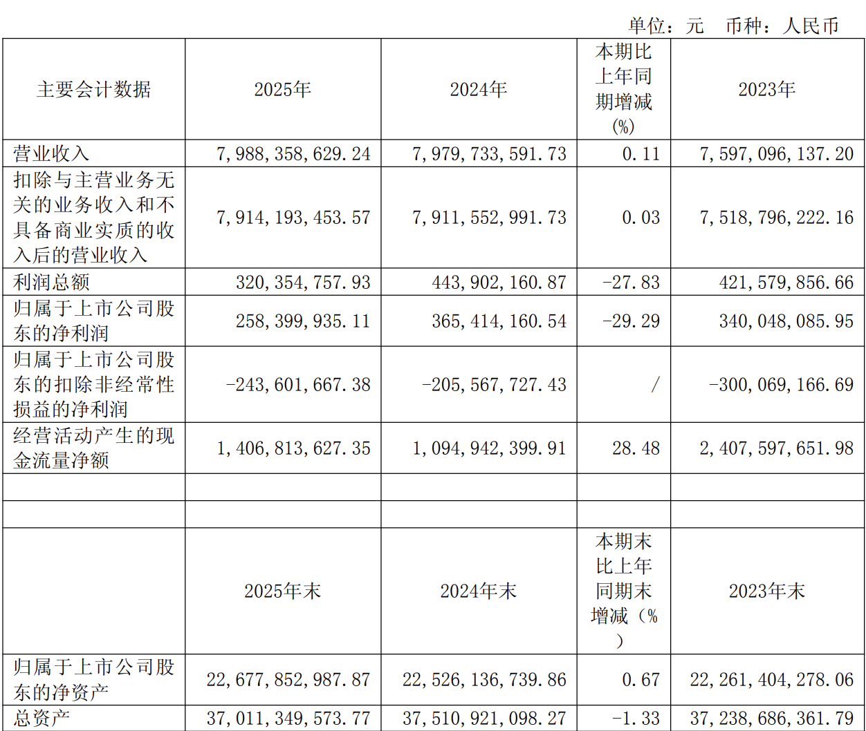 昨日,江苏有线发布了2025年年度报告。报告期内,公司实现营业收入79.88亿元,同比增长0.11%;实现净利润2.58亿元,同比下降29.29%。