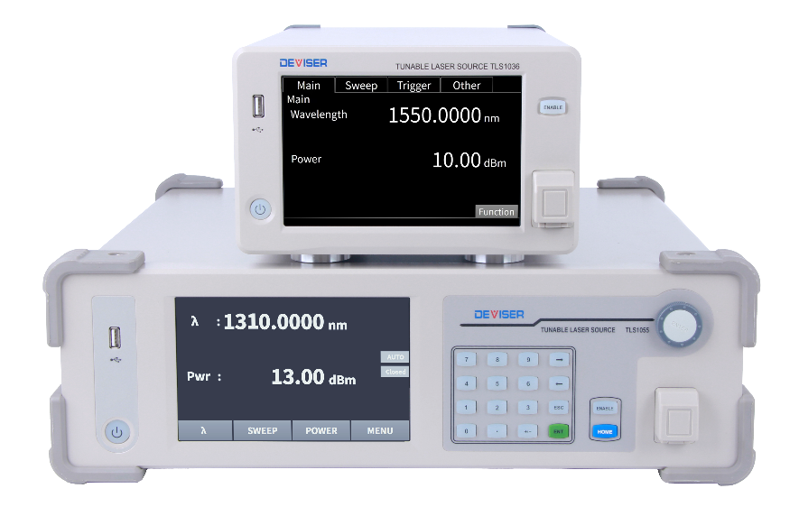 可调谐激光光源则应用了德力光电在光、机、电等领域多年的成熟技术,调谐范围1480–1640nm,扫描速度>100nm/s。产品通过精心设计的激光腔体与超低噪声电路基板,实现了宽波长范围、高光功率、低噪声、窄线宽以及快速无跳模扫描等优良特性,能够适配光器件、光模块、光纤传输全场景测试。
