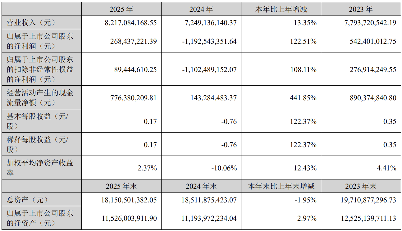 上周五,千方科技发布2025年年度报告。报告期内,公司实现营业收入82.17亿元,同比增长13.35%;归属于上市公司股东的净利润为2.68亿元,成功实现扭亏为盈(上年同期为亏损11.93亿元)。