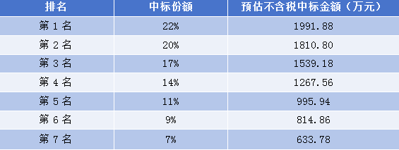 本项目中标人数量为7个,每个中标人对应的份额如下:
