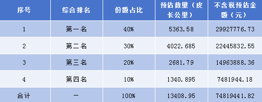 本项目中标人数量为4个,各中标人对应的份额占比及预估数量如下: