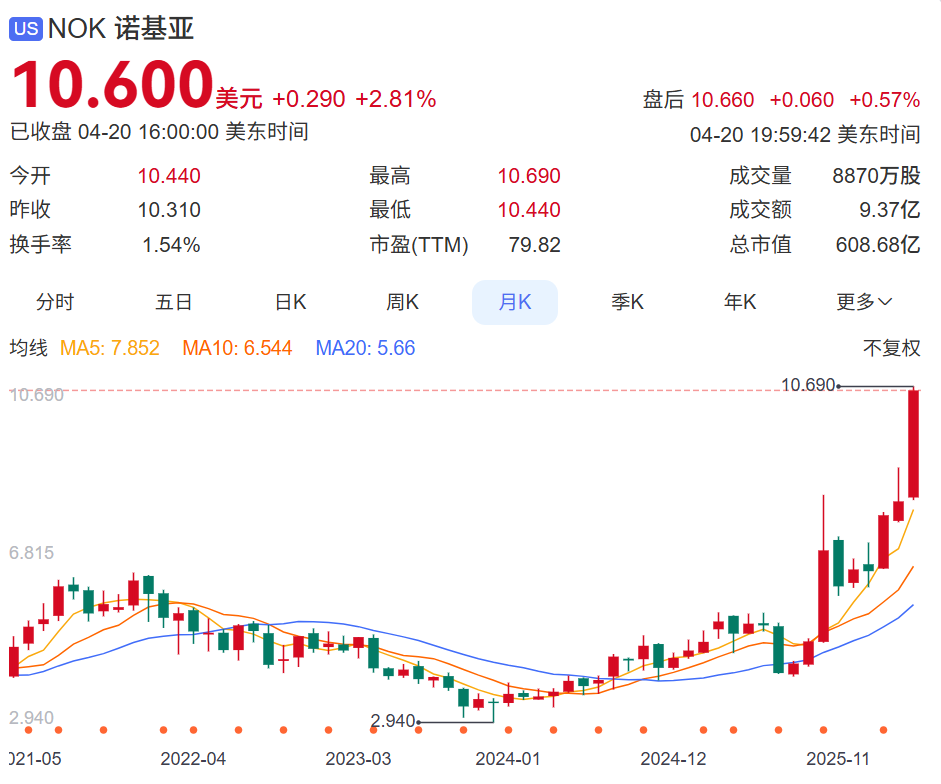 黄仁勋翻出诺基亚这颗“活化石”并非恋旧,因为算力越提升,通信技术就越会成为瓶颈,网络延迟过高会导致算力空转,数据丢包更是直接导致任务中断,而通信是英伟达的短板,倒逼着黄仁勋和整个AI领域都重新审视通信技术的价值,也使得诺基亚获得了价值重估。