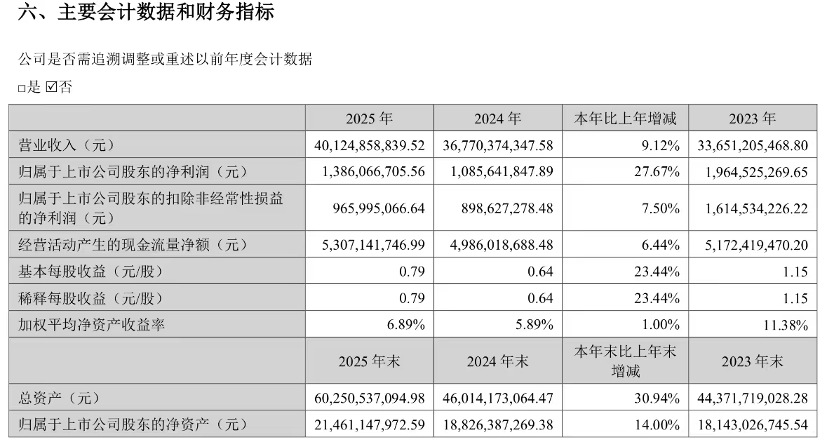 全年营收首次突破400亿大关,同比增长9.1%至401.2亿元;归母净利润同比大增27.7%至13.9亿元,利润增速是营收的3倍,盈利质量显著提升。